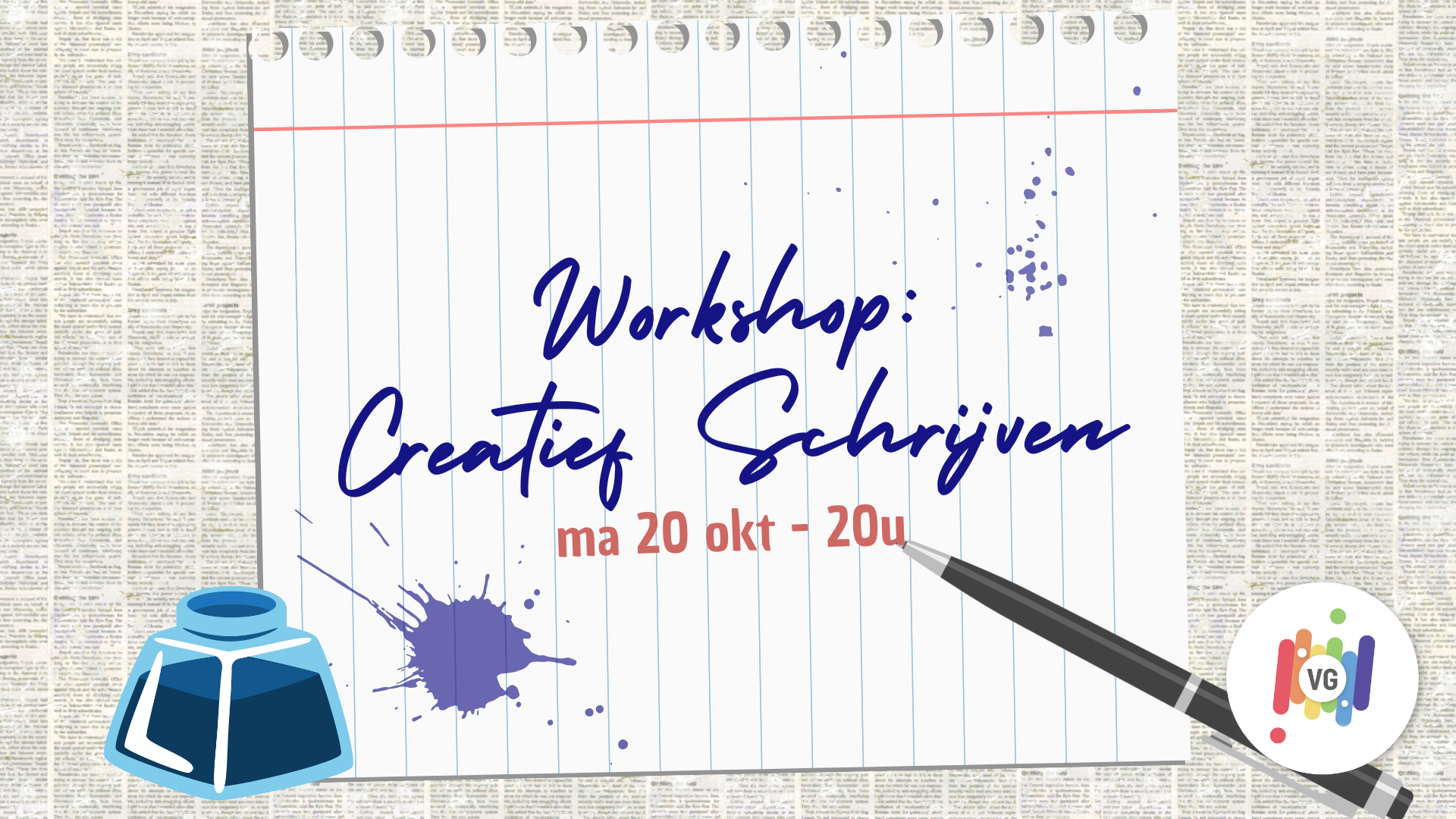 Op 20 oktober vindt er bij VG een workshop creatief schrijven plaats. Tijdens deze avond laten we ons leiden door korte oefeningen die je uitnodigen om vrijuit en op basis van associaties te schrijven. Er is geen goed of fout, enkel plezier. Je hoeft daarvoor niets mee te nemen, enkel veel goesting om aan de slag te gaan. ✍🏻